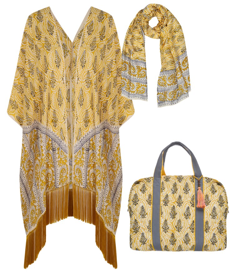 Mir gefällt vor allem der gelbe Seidenkimono, mit dem die fischgebackene Mutter elfengleich über den Klinikboden schweben und stilgerecht Stillen kann. Die hübsche gesteppte Baumwolltasche ist ein Weekender, in dem genug Platz für die erste eigene Babykleidung, Nachthemden, Kosmetik etc. ist.