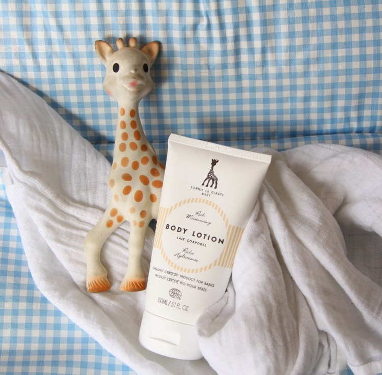 Passend zum Spieltier gibt es jetzt eine vegane Pflegereihe von Sophie la Giraffe, die auch ganz bedenkenlos verwendet werden kann. Bisher haben wir Noam nicht eingecremt, aber jetzt im Sommer, ist seine Haut durch das viele Spielen im Wasser etwas trocken geworden. Und so haben wir die Body Lotion, die mit dem Ecocert-Siegel ausgezeichnet ist, nahezu 100% natürliche Inhaltsstoffe enthält und natürlich keine Parabene, künstliche Düfte oder andere bedenkliche Zusatzstoffe, getestet.