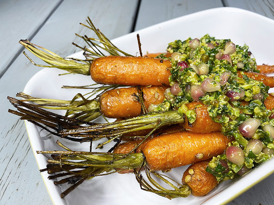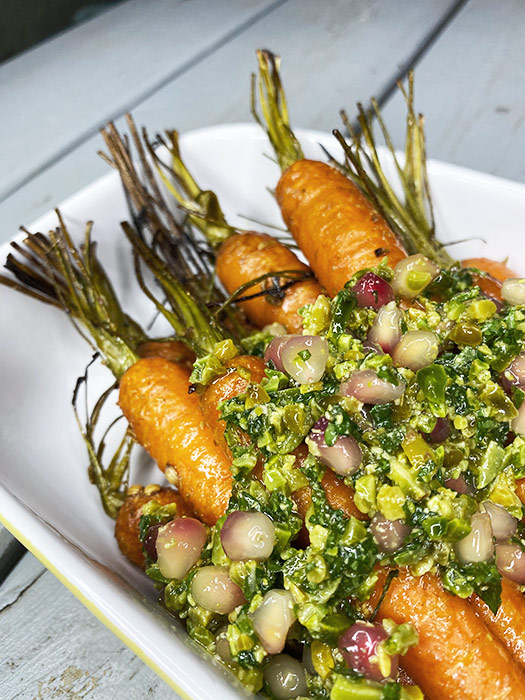 - geröstete Karotten mit einem Pistazien-Granatapfel-Relish