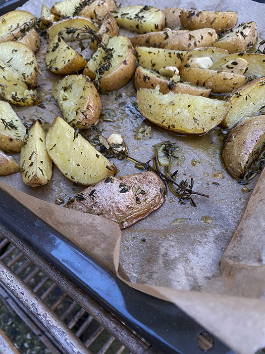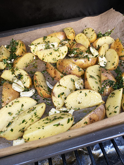 - smoked Potato-Wedges mit Knoblauch und Thymian
